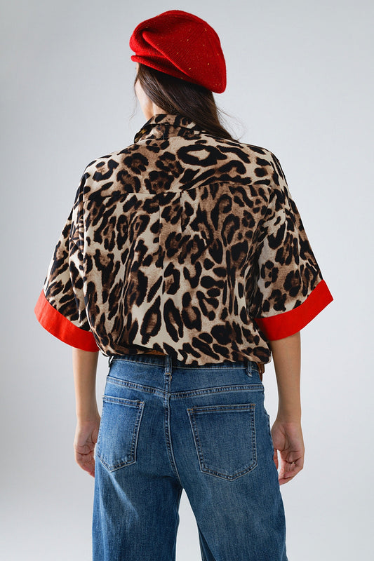 Leopard 3/4 Sleeves Shirt WIth Red Details